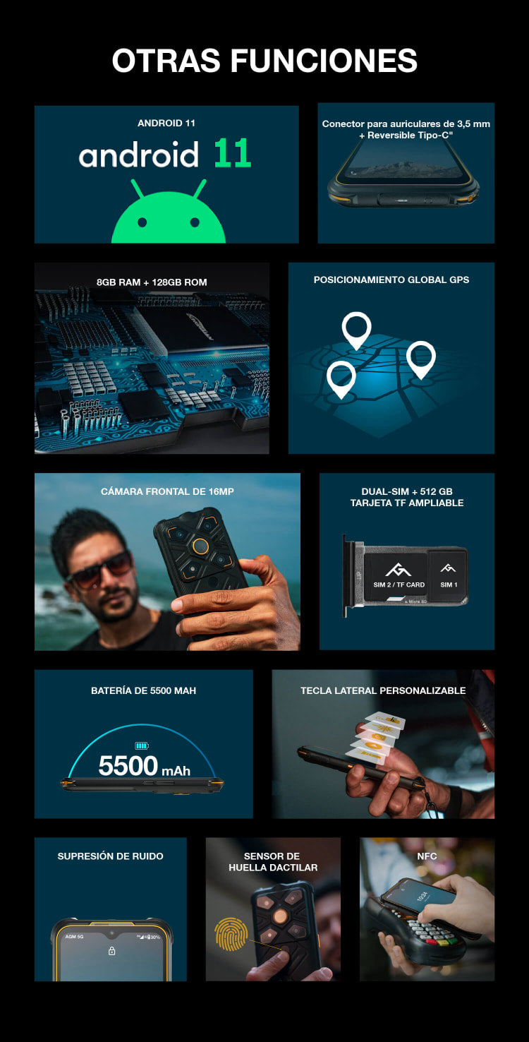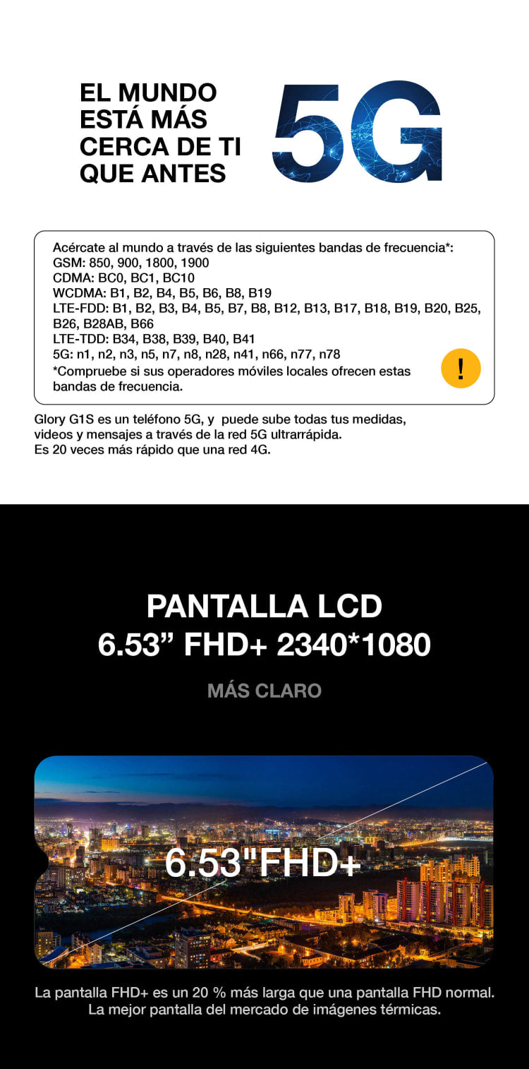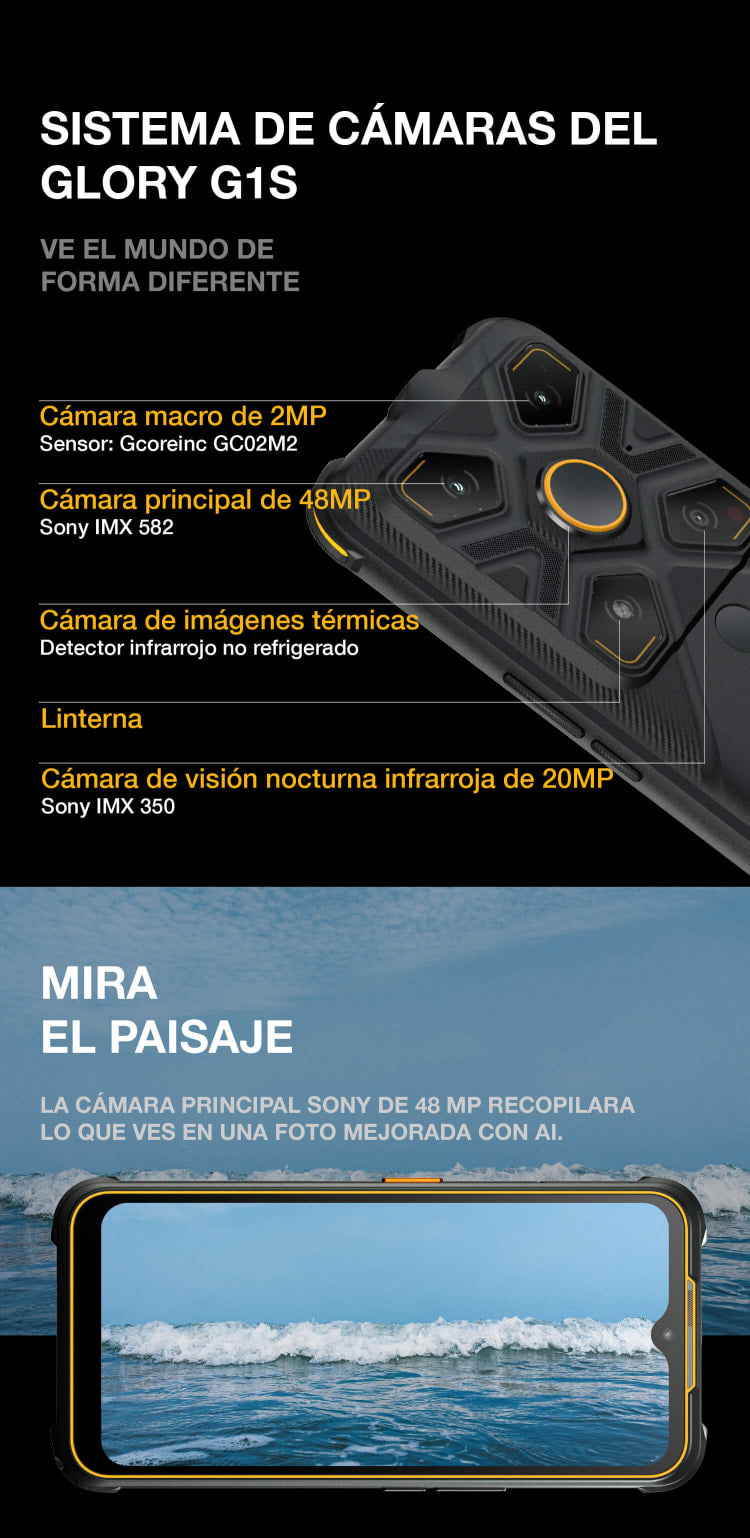 AGM Glory G1S | Teléfono inteligente resistente 5G | Cámara térmica profesional | Cámara principal Sony 48MP