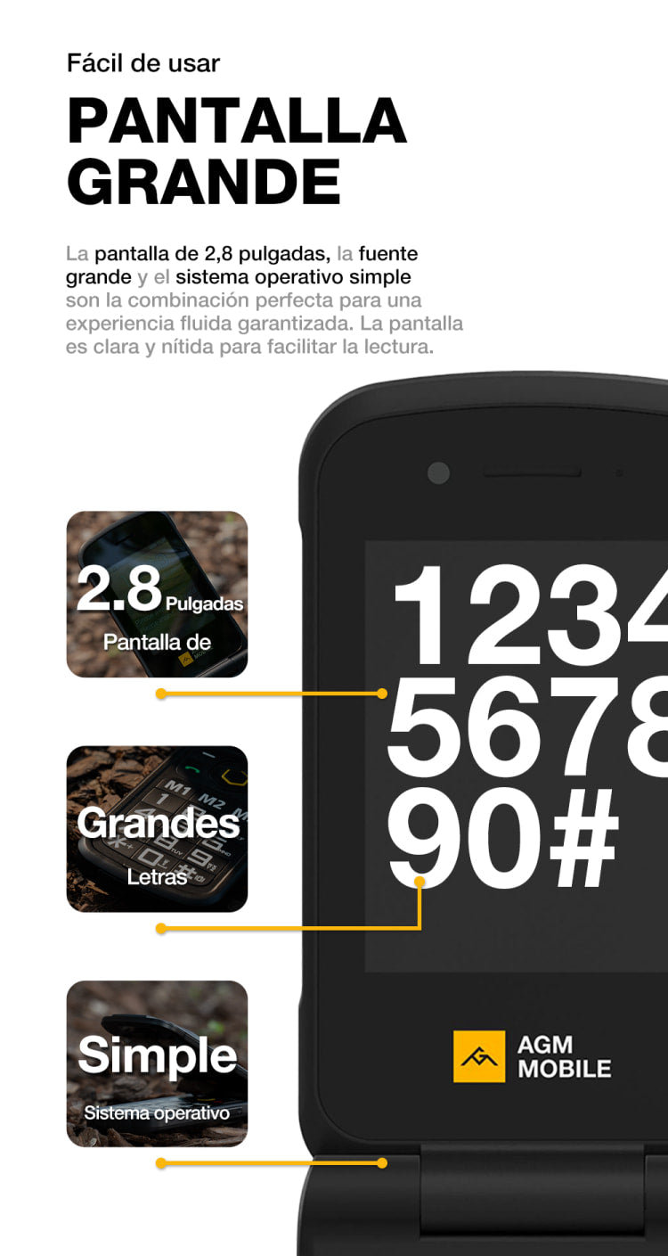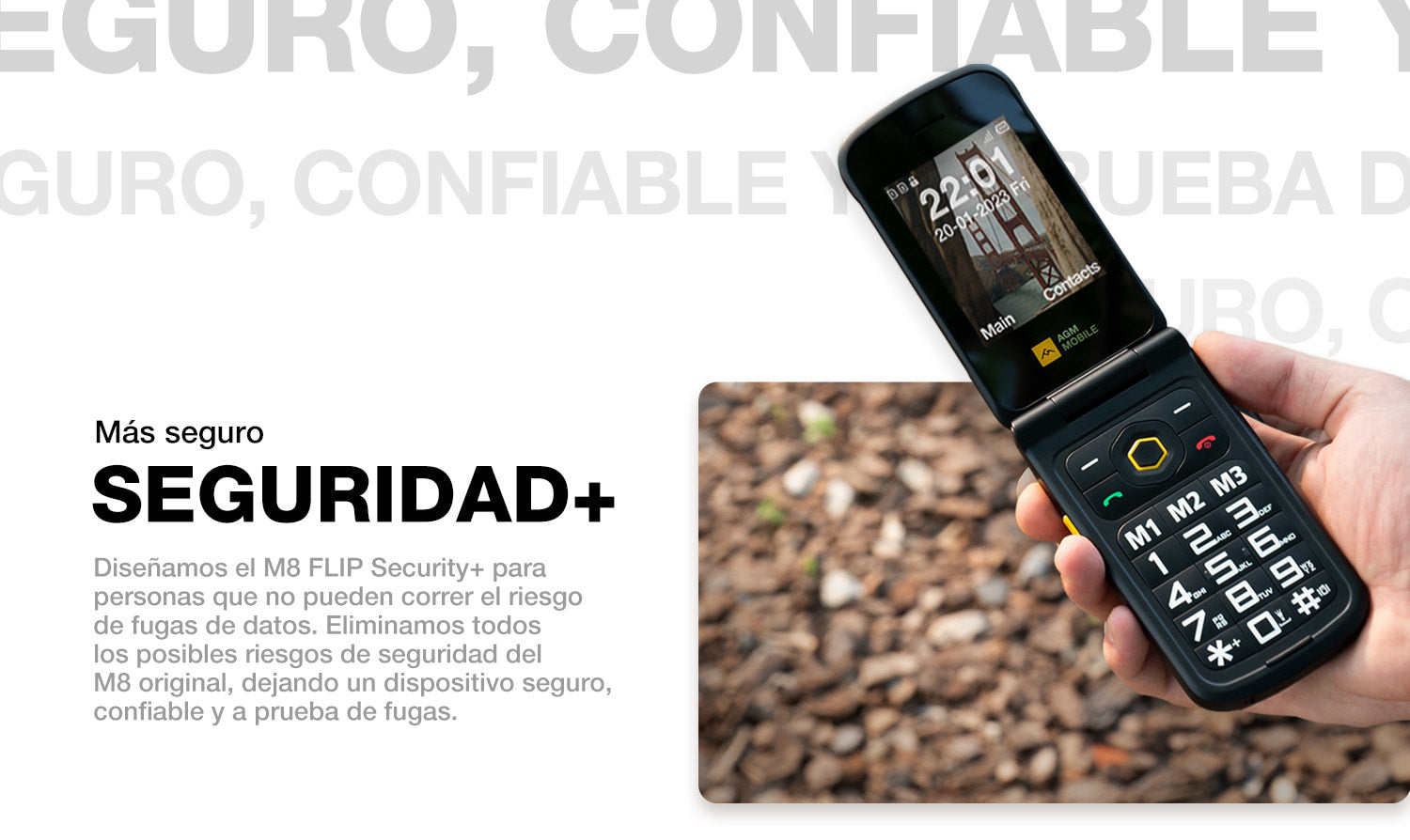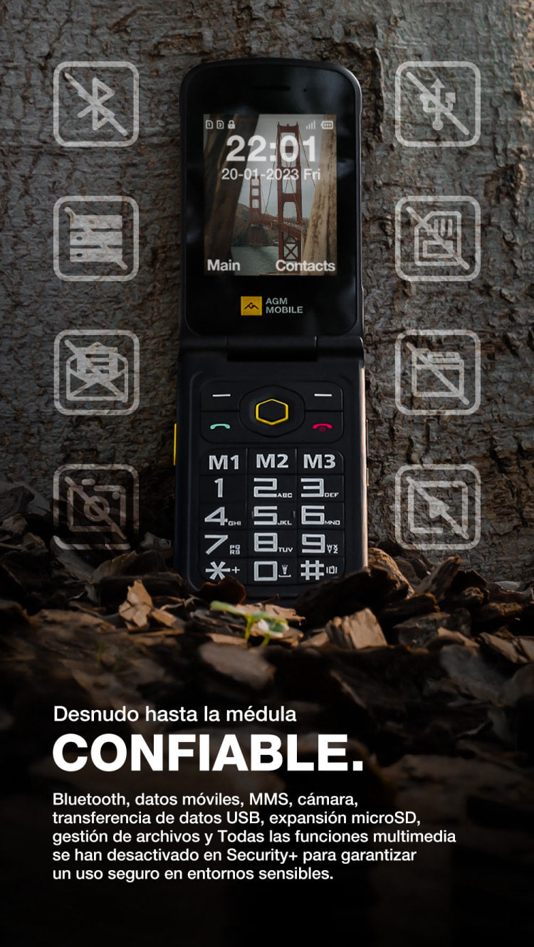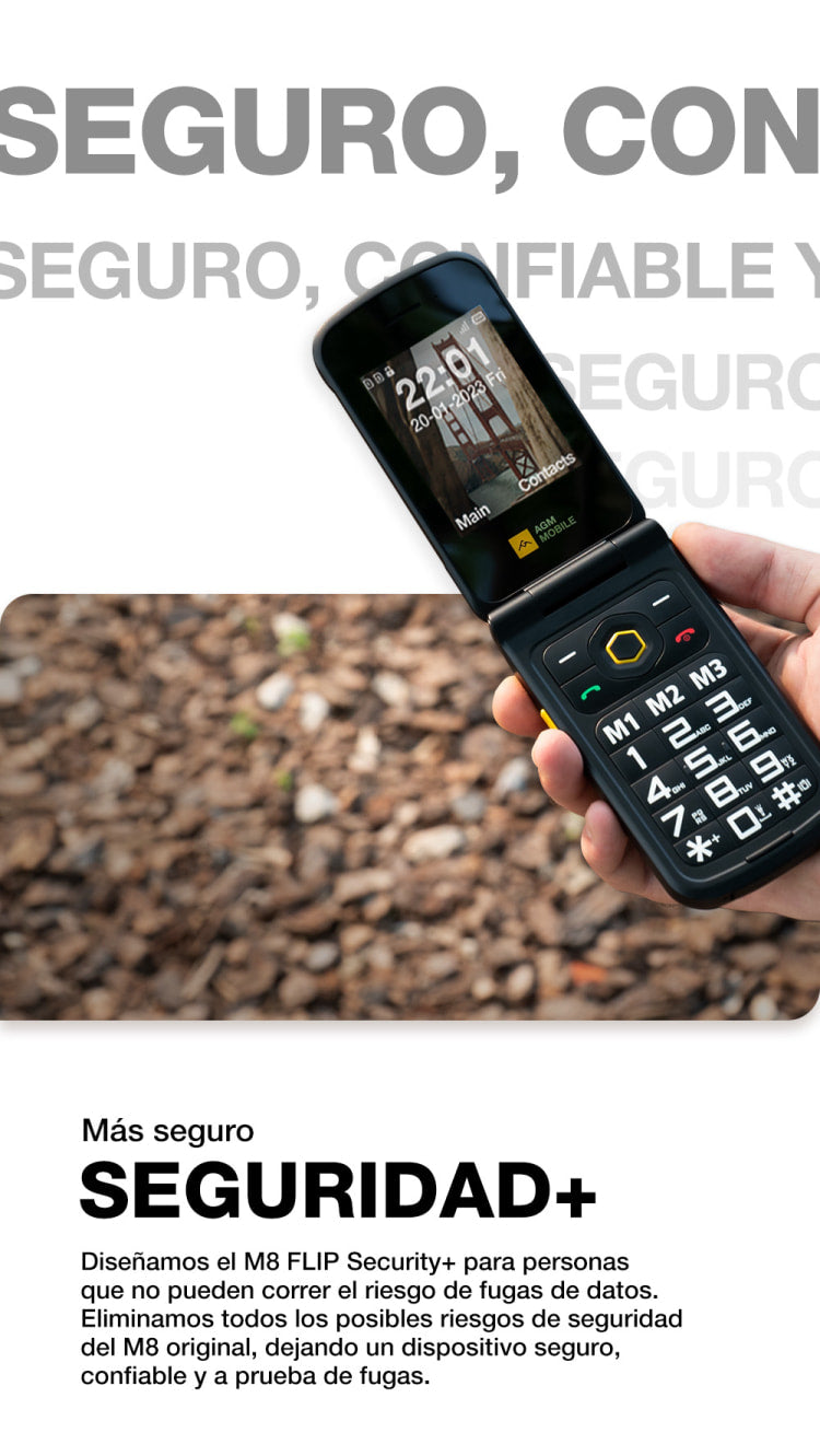 AGM M8 FLIP Security+ | Teléfono con tapa resistente | Datos seguros | Vulnerabilidades reducidas | Sin seguimiento
