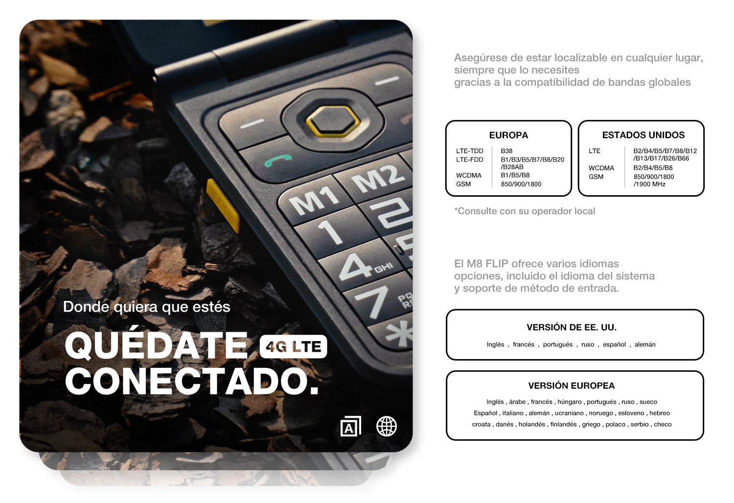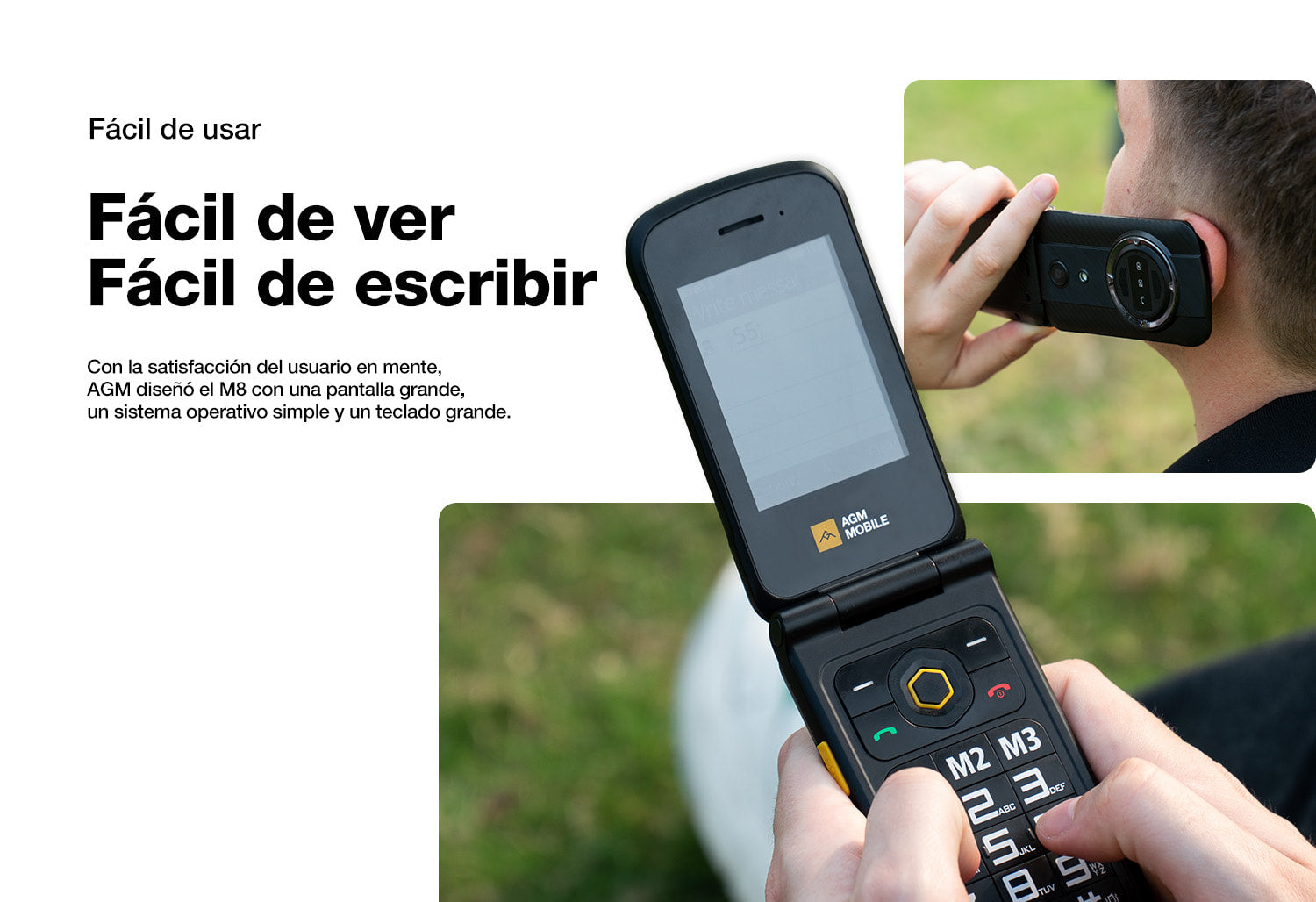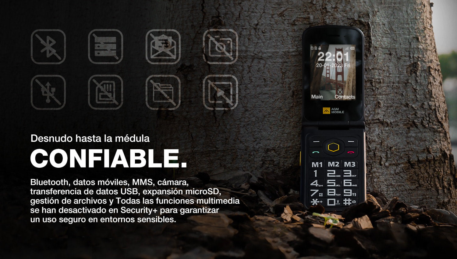 AGM M8 FLIP Security+ | Teléfono con tapa resistente | Datos seguros | Vulnerabilidades reducidas | Sin seguimiento