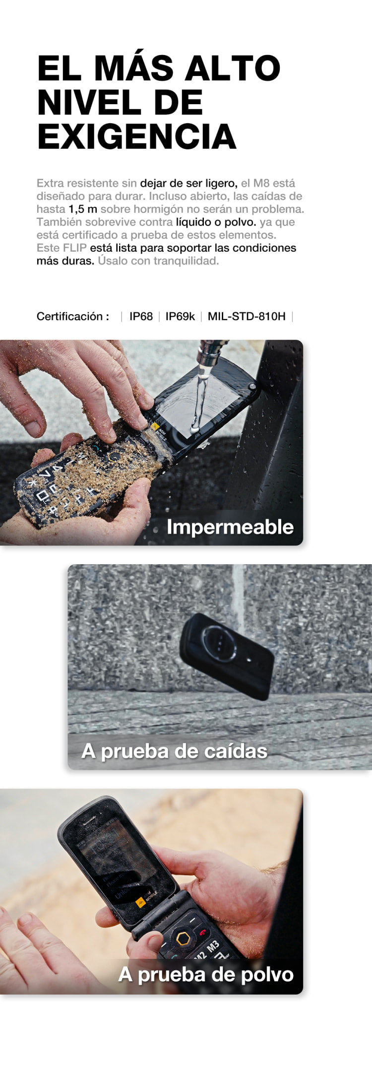 Certificaciones: IP68/IP69K/MIL-STD-810H, FCC/CE/ROHS