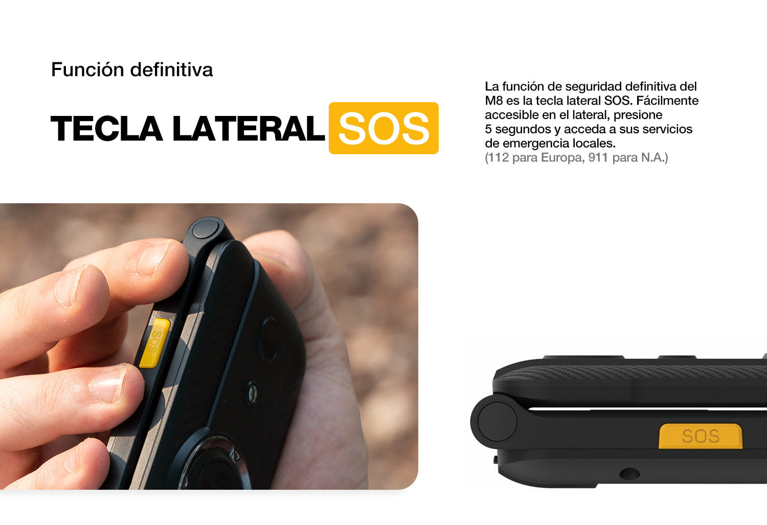 Tecla lateral: Encendido/apagado de linterna/SOS