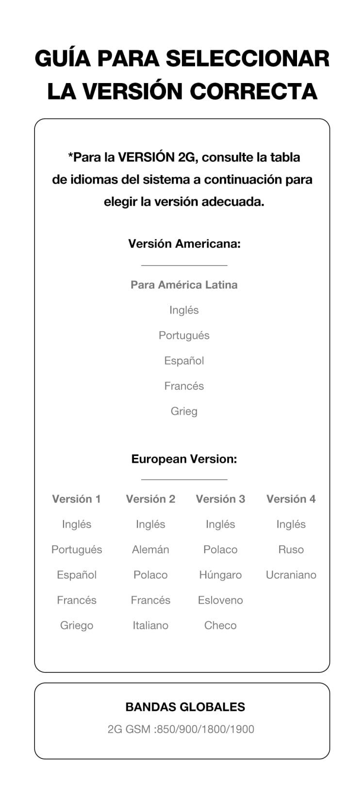GSM :850/900/1800/1900 WCDMA:B2/B4/B5 LTE:B2/4/5/7/8/12/17/28A