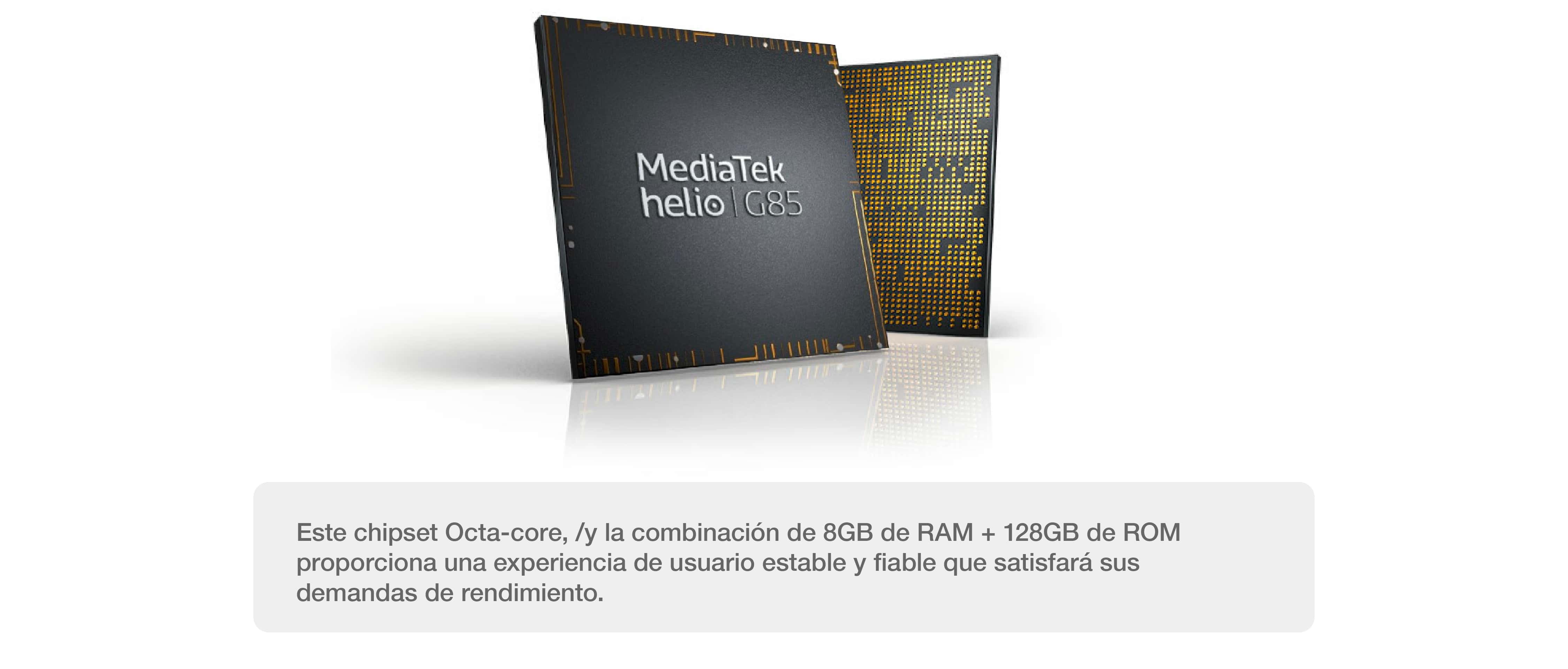 Chipset: 2*Cortex-xA75 hasta 2GHz + 6*Cortex-xA55 hasta 1.8GHz MT6769V/CZ